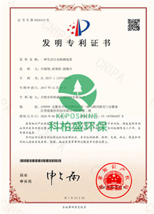 生活污水除磷裝置發明專利證書